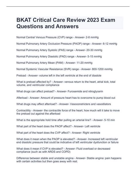 Online PDF Bkat Exam Sample Test Critical Care Questions Ebook PDF
